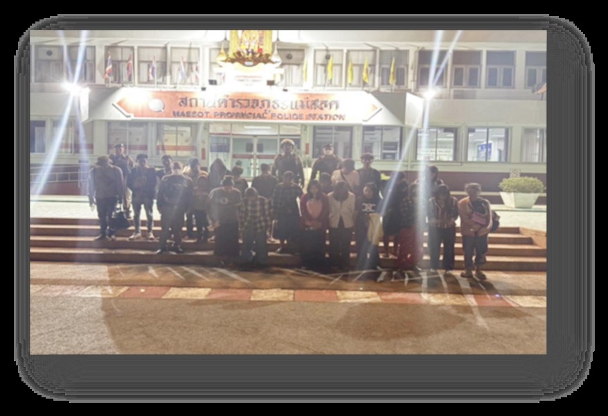 เมื่อวันที่ 14 กุมภาพันธ์ 2568 เวลา 00:30 น. เจ้าหน้าที่ชุดจับกุม ได้ออกตรวจพื้นที่รับผิดชอบ บริเวณบ้านห้วยม่วง ตำบล   ท่าสายลวด อำเภอแม่สอด จังหวัดตาก  พบว่ามีบุคคลลักษณะคล้ายบุคคลต่างด้าว ไม่ทราบสัญชาติ ตรวจสอบหนังสือเดินทางหรือหลักฐานเข้ามาและอาศัยในราชอาณาจักร แต่ นางสาวต๊ะสุหล่าย    ไม่มีนามสกุล อายุ 24 ปี สัญชาติเมียนมา กับพวก รวม 19 คน ไม่มีหลักฐานใด ๆ นำแสดง เจ้าหน้าที่ตำรวจจึงได้แจ้งข้อกล่าวหา เป็นบุคคลต่างด้าวหลบหนีเข้ามาในราชอาณาจักรโดยไม่ได้รับอนุญาต ในชั้นจับกุม ผู้ต้องหารับทราบข้อกล่าวหาและเข้าใจดีแล้วให้การรับสารภาพ