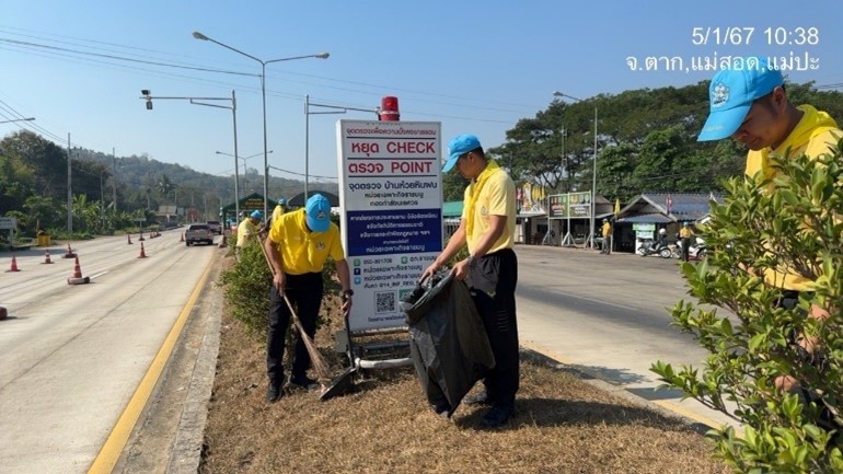 วันนี้ (5 ม.ค. 67) เวลา 10.00 น.  พ.ต.ท.ศุภกิจ ศรีไพร สวป.สภ.แม่สอด พร้อมด้วยชุดจิตอาสา ชุดที่ 1 ปรับปรุงภูมิทัศน์ ถนน บริเวณ จุดตรวจสกัดกั้นบ้านห้วยหินฝน ช่วงเทศกาลส่งท้ายปีเก่าต้อนรับปีใหม่ 2567