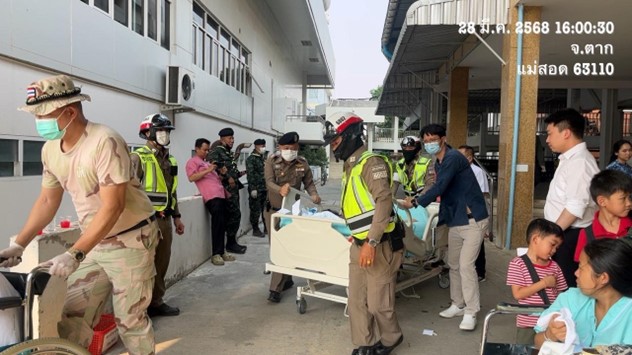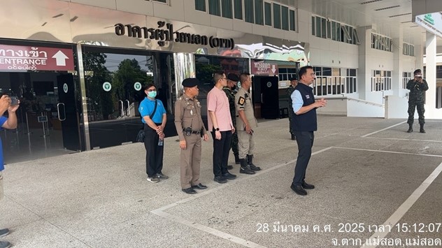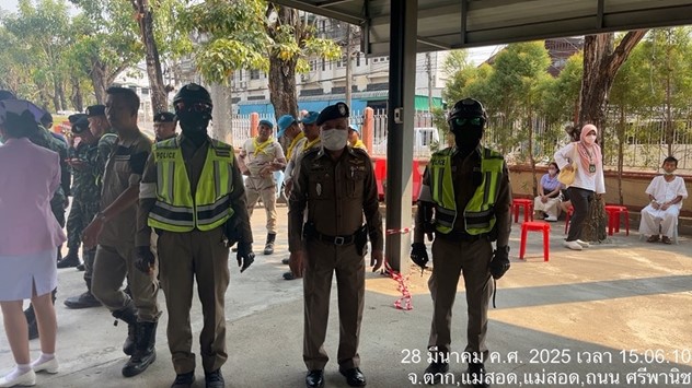 • เมื่อวันที่ 28 มีนาคม 2568 . พ.ต.อ.รัง ดาวดึงษ์ “แม่สอด 1” ผู้กำกับการสถานีตำรวจภูธรแม่สอด จังหวัดตาก ลงตรวจสอบตามพื้นที่ต่างๆ ภายหลังเกิดแผ่นดินไหว ตามคำสั่งของ พล.ต.อ.กิตติ์รัฐ พันธุ์เพ็ชร์ ผู้บัญชาการตำรวจแห่งชาติ (ผบ.ตร.) ที่ได้สั่งการด่วนตำรวจทุกพื้นที่ ให้ดูแลช่วยเหลือพี่น้องประชาชน หลังจากเวลาประมาณ 13.30 น. เกิดแผ่นดินไหว จุดศูนย์กลางอยู่บริเวณประเทศเมียนมา สามารถรับความรู้สึกสั่นไหวบริเวณกรุงเทพมหานคร ปริมณฑล ภาคเหนือ ภาคตะวันออกเฉียงเหนือ ภาคกลาง และภาคใต้